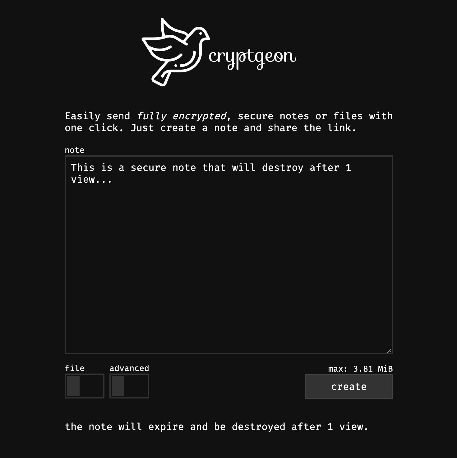 If you are sharing passwords or other sensitive data over IM, email etc. you should take a look at this free web application. The application is called cryptgeon and is developed by a guy called Nicco. The application will only keep the shared secrets/files in memory and not write the data to disk. You can have a look at his GitHub repo here or see the screenshot below for the UI.
